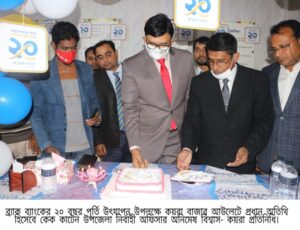 ব্র্যাক ব্যাংকের ২০ বছর পূর্তি উপলক্ষে কয়রা বাজার আউটলেটে কেক কেটে উৎযাপন